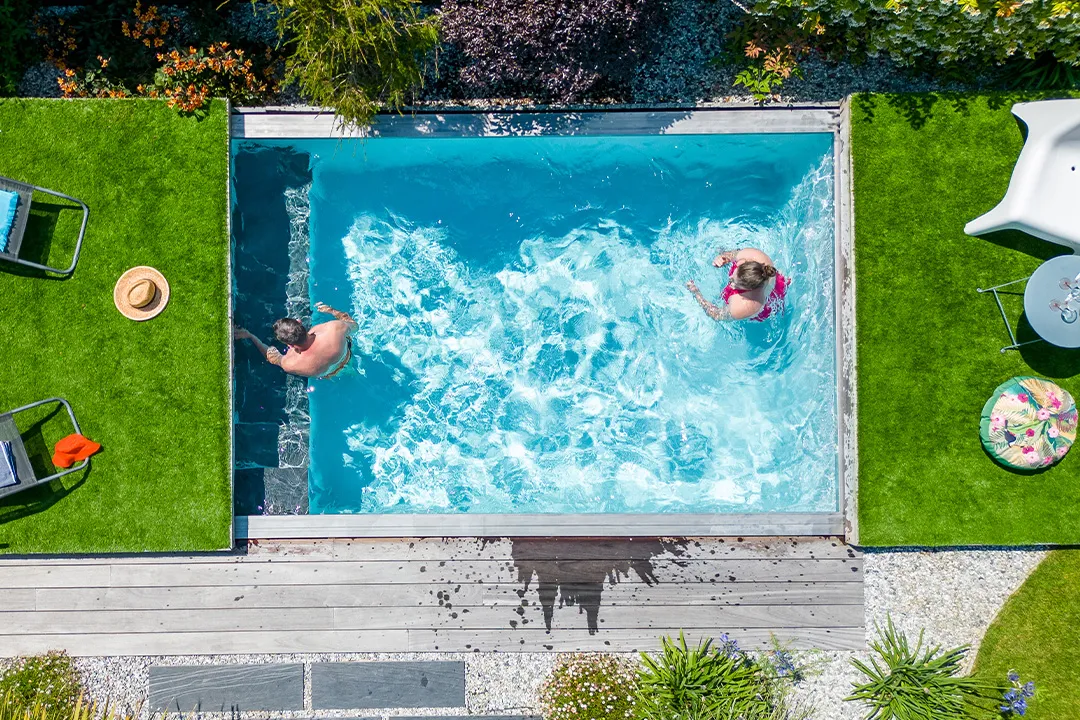 Contrairement aux idées reçues, une grande piscine n’est pas indispensable pour répondre aux besoins du quotidien. 10 m² suffisent largement pour un usage familial.