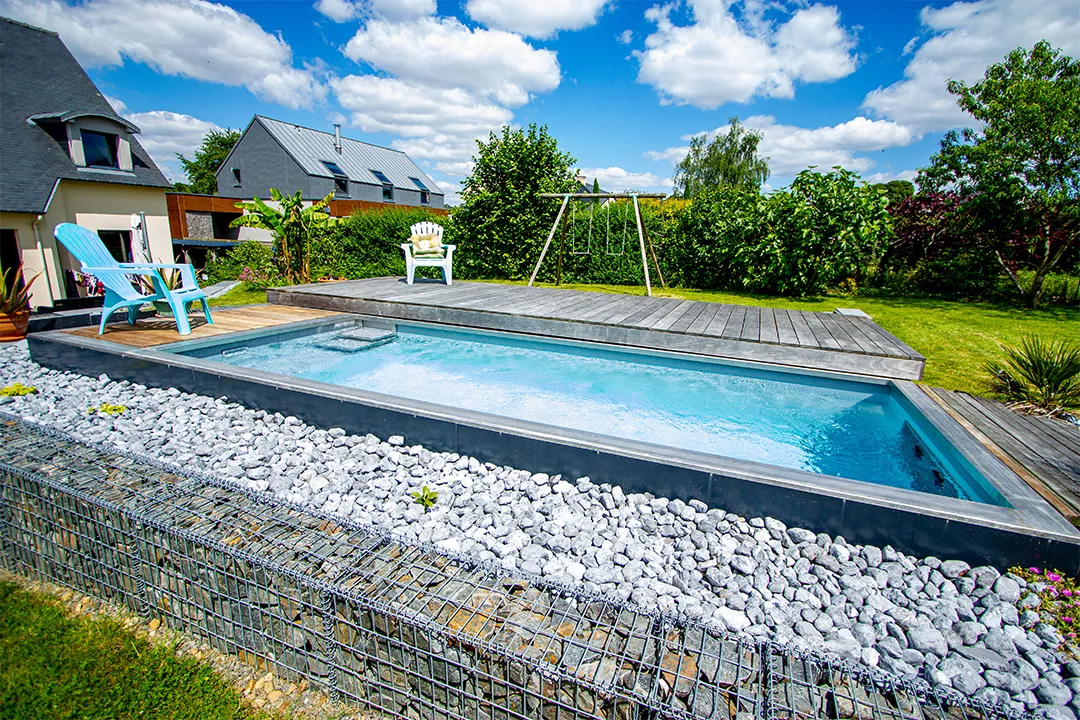 Une mini piscine est un bassin de baignade, conçu pour se rafraîchir, se détendre ou nager. La terrasse aquatique, quant à elle, combine un bassin discret et une terrasse mobile qui recouvre l’eau lorsqu’elle n’est pas utilisée, permettant de conserver un espace extérieur fonctionnel au quotidien. C’est une solution idéale pour profiter des avantages d’une piscine tout en optimisant l’espace, notamment dans les jardins urbains ou résidentiels. Sa surface est inférieure à 10 m², ce qui permet une installation sans permis de construire